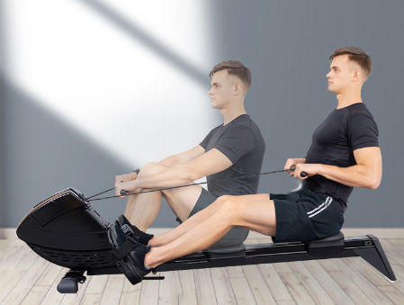划船机是一种强有力的有氧健身器材,能够锻炼背部肌肉、手臂、腿部和腹肌。使用时,可以通过调整阻力来调整训练强度,同时也可以通过不同的姿势比如前单臂划、侧单臂划等来更全面无死角的训练肌群。