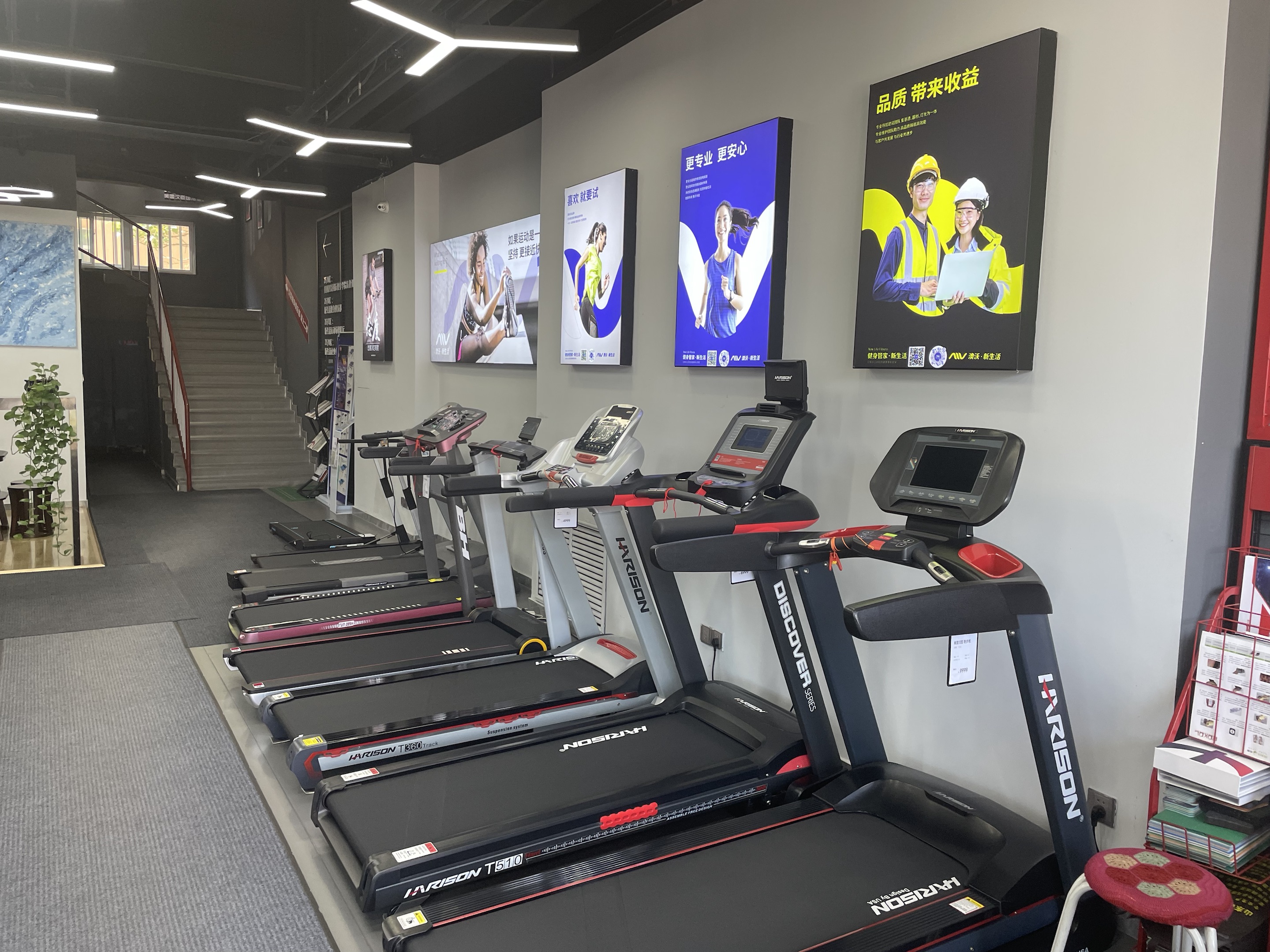 店内还有美国汉臣健身器材展厅:精选优质商用/家用健身器材享受一站式健身房配置服务
